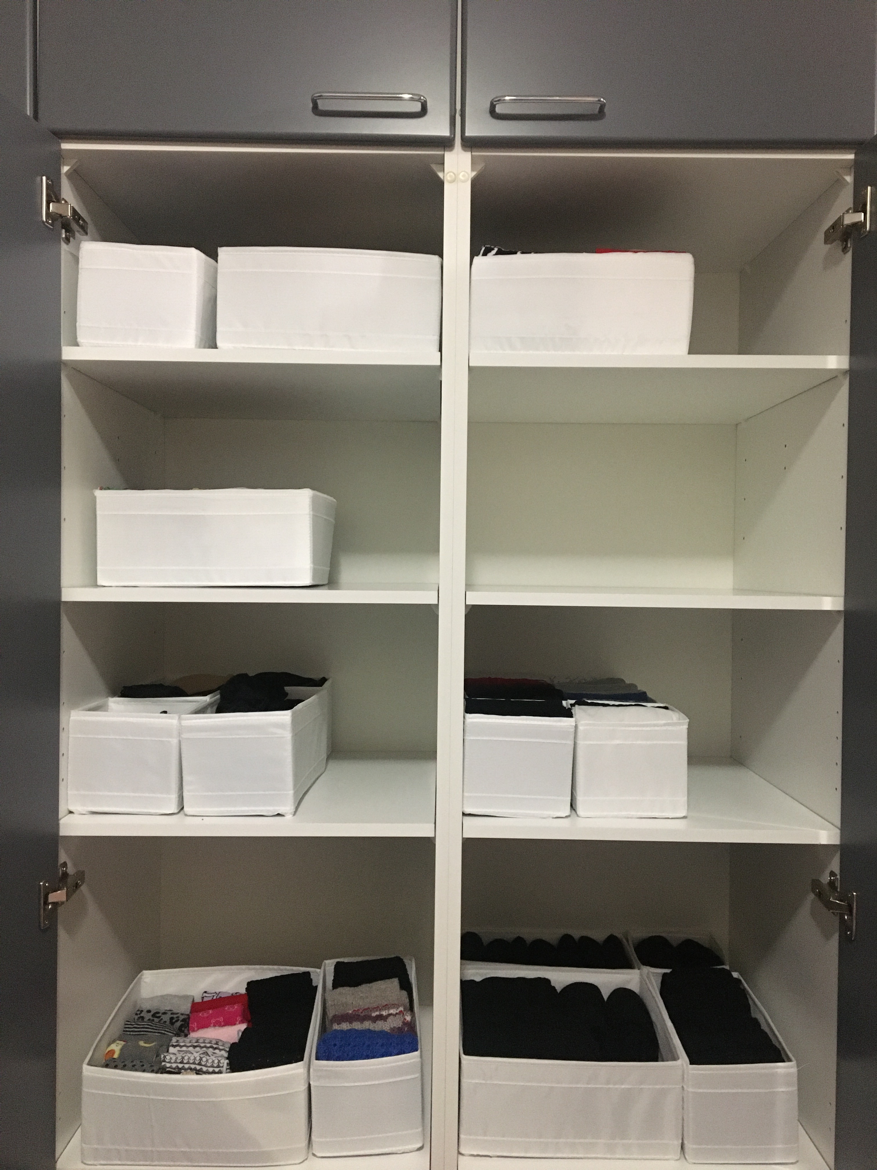 - Ryhmittele! Sukille oma laatikkonsa, t-paidat tuonne ja farkut tänne. Näin navigointi on helppoa ja kaikille vaatteille on oma kotinsa. Silloin myös vaatteiden takaisin pistäminen käy vaivattomasti!